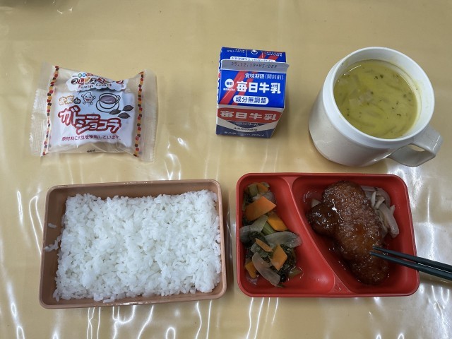 (献立表を確認しましたが、コーンスープではなく、とうもろこしスープ)