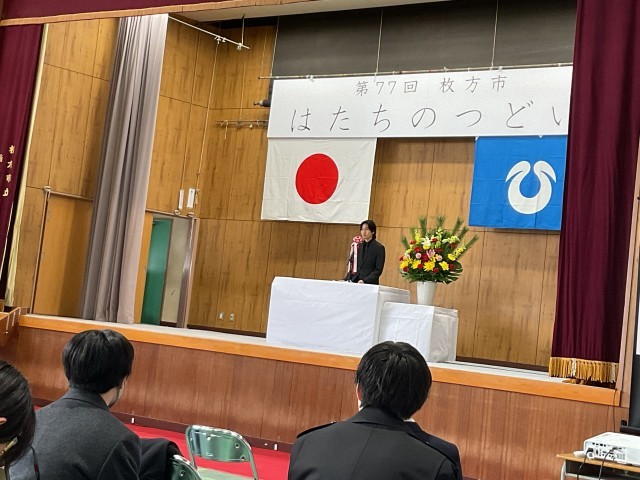 1月13日(火) はたちのつどい 公開日 2026/01/13 更新日 2026/01/13 学校のようす 昨日、はたちのつどいが開催されました。はたちのつどいは、各中学校で開催されます。中学校卒業以来、5年ぶりの再会です。はたちの祝い、久しぶりの懐かしい顔で、参加者は笑顔いっぱいでした。式典には、吹奏楽部(枚方くずにしウインドオーケストラ)や和太鼓の演奏もあり、盛り上がった式典でした。 +2 いいね(0)