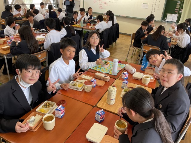 始業式の翌日ですが、本日から給食が開始されています。(お弁当持参の生徒もいます)