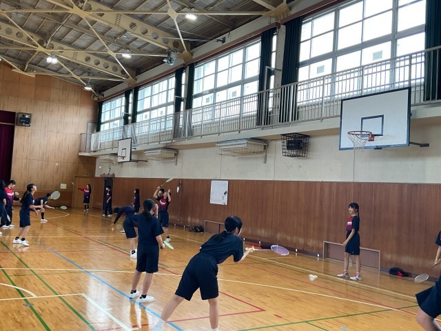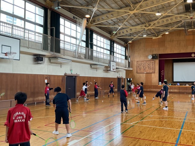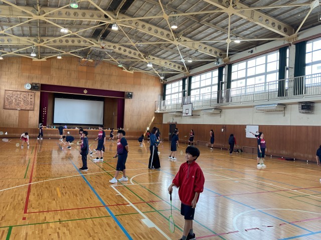 体育の授業でバトミントンを行っています。