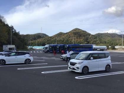 早くも最後のトイレ休憩「伊吹PA」を出ました。高速道路が空いていて予定よりも20分早い出発となります。到着予定は5時15分前後だと予想されます。バス内は寝ている生徒もいますが、ビンゴやクイズなどで楽しんでいます。若いというのは素晴らしいことです。