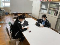 ・図書館でみんなで勉強。過去問を確認中(上の写真)