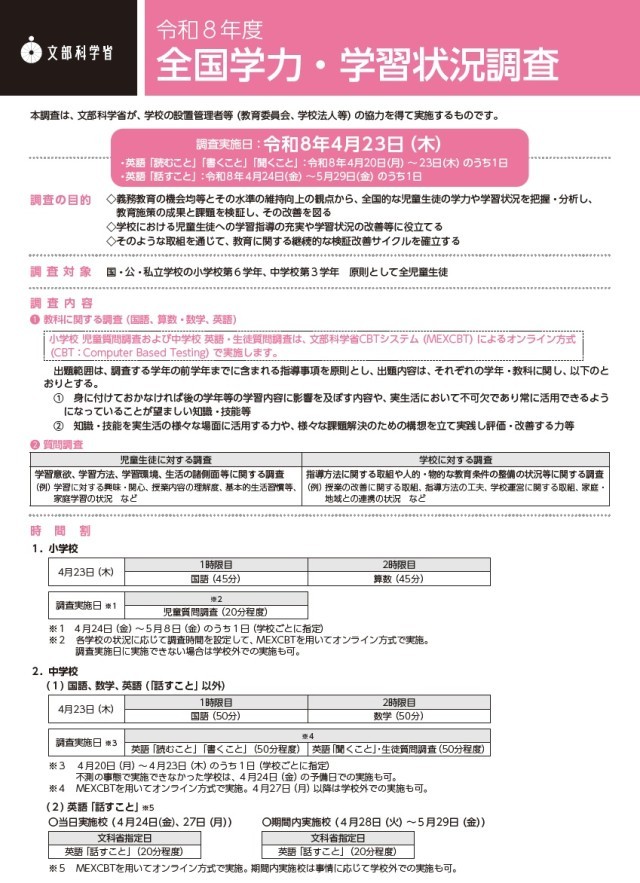 今日も全国学力学習状況調査2026