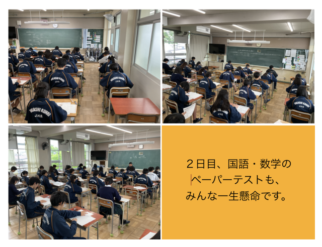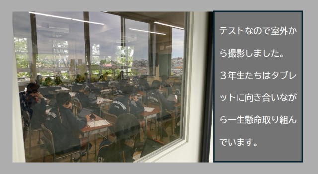 今日4月23日は国語・数学のペーパーテストです。3年生は連日学力テスト受験ですがしっかり頑張ってくれています。