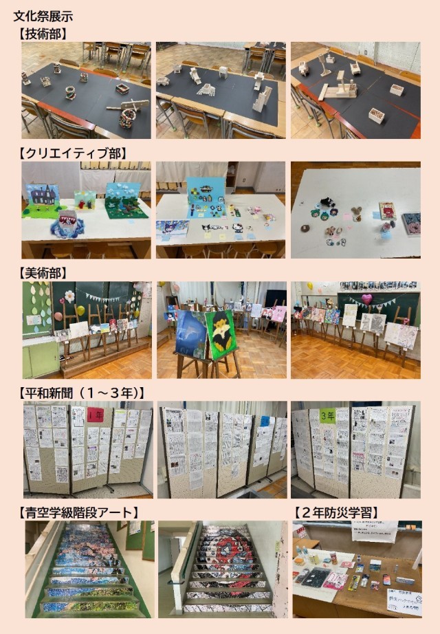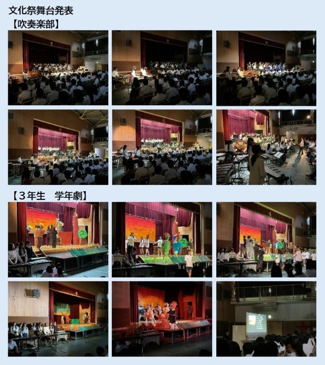 今日は東香里中学校文化祭でした。各クラスや文化部を中心に、これまで準備や練習の成果が十分に発揮された発表でした。特に、3年生の学年全体で取り組んだ劇や2年生の学年合唱は完成度が高く感心しきりでした。また、それぞれの展示も充実していて、興味深く鑑賞できました。生徒会を始めとして生徒の皆さん、おつかれさまでした。