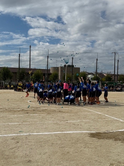 少し陽が出てきました。ブロック対抗玉入れが行われています。