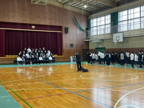 1年生のみなさん。これが、杉中学校の全校集会の姿です。これを伝統として引き継いでいく担い手になってほしいと思います。