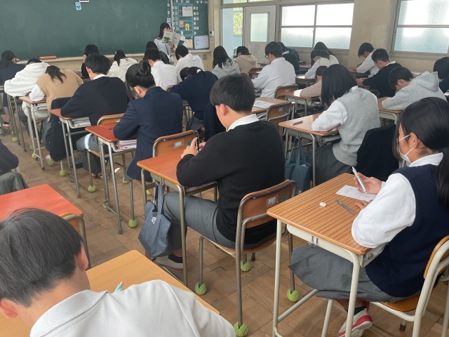 3年生国語:冒頭で、漢字の小テスト(10問)をしています。