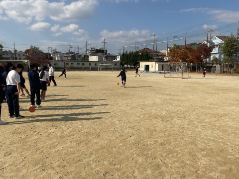 クラス数が多いことから、3つの集団が一つのグランドで授業を展開することは、日常茶飯事で、さらに3つの競技となると、広いグランドも狭く感じます。