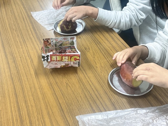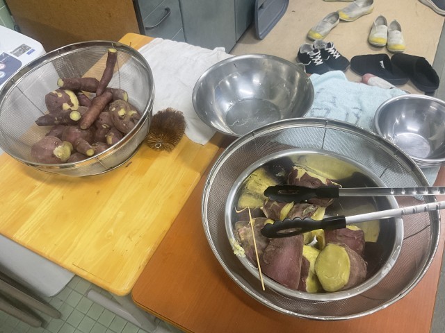 ひまわりの教室では、学校の畑で収穫したさつまいもを使って、「簡単スィートポテト」を調理しています。
