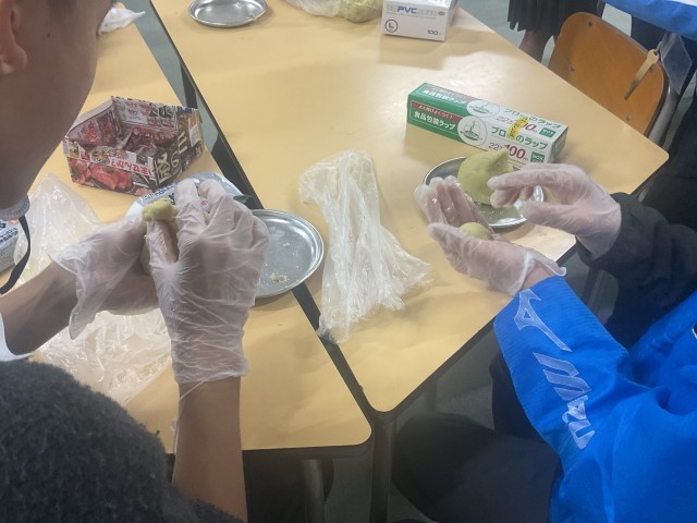 パテシエ気分で形作る生徒もいれば、食欲が勝ってそのまま頬張る生徒も。