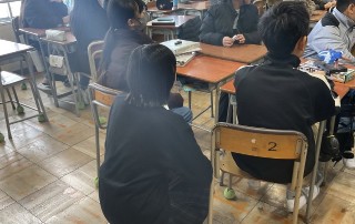 少し緊張気味の小学6年生をリラックスさせながら質問を促し、しっかり受け答えいる姿は大変頼もしく、小学校時代を知る先生たちから「成長しましたね。」と嬉しい言葉をかけていただきました。