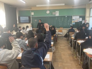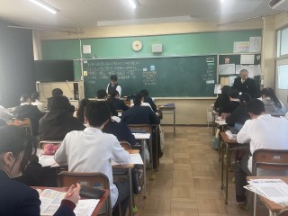 授業は、2年生国語、2年生体育、3年生社会です。