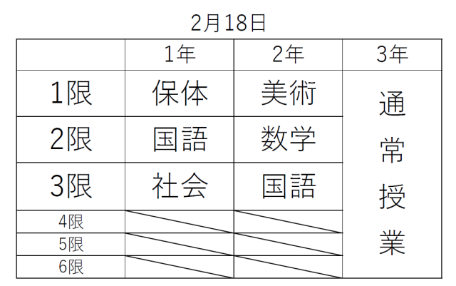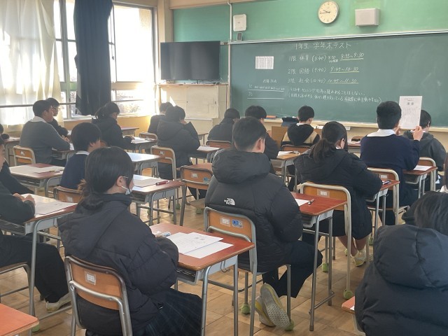 1・2年生は、今日から3日間、学年末テストを実施します。