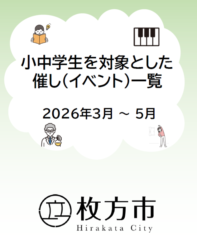枚方市役所各部署において実施している小中学生を対象としたイベントや講座等の取り組み一覧です。