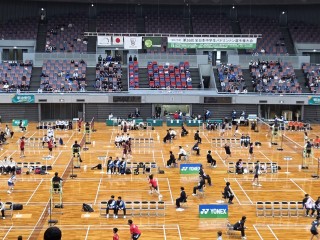 大阪で標記大会が開催され、本校バドミントン部員12名が得点係として参加しました。