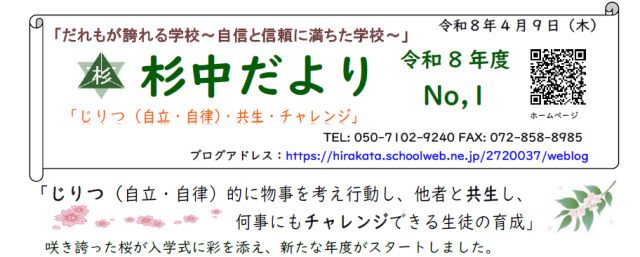 「杉中だより」No,1を発行しました。