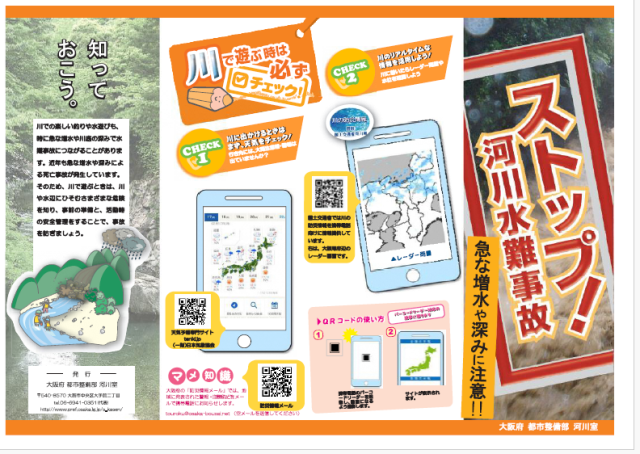 3 大雨、洪水、波浪、雷等の警報や注意報が発令された際には、河川に近づくことを控えるとともに、外出時において天候が急激に変化した場合は、集中豪雨による河川の急激な増水の恐れがあるため、速やかに河川から離れること。