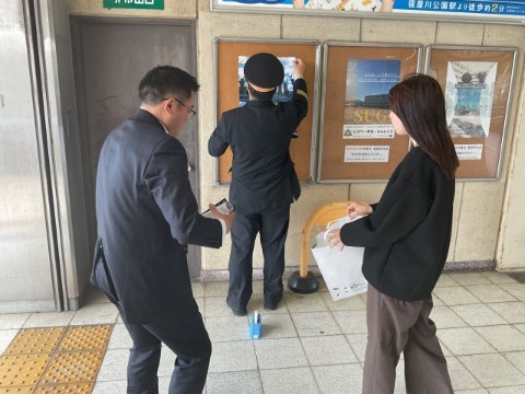 杉中ポスター 藤阪駅でお披露目(4月28日)
