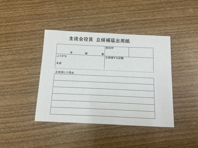 昼休みと放課後に選挙管理委員が受付を行なっています。