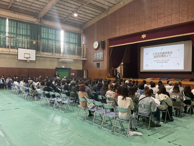 授業参観後は、体育館で3年生保護者集会を開催しました。