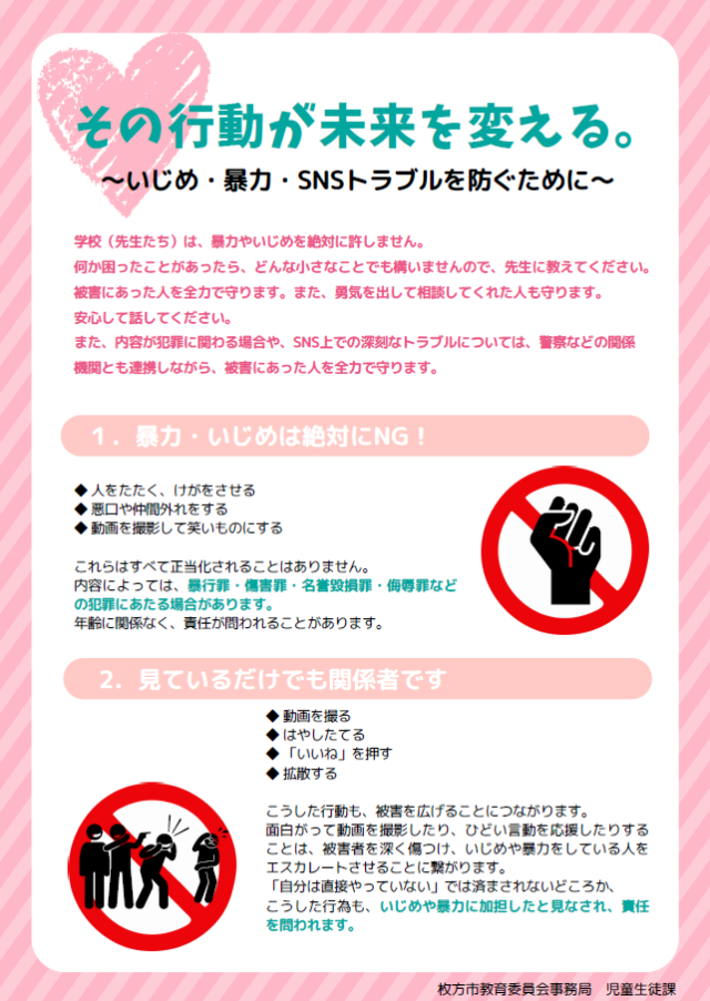 →(参考資料)その行動が未来を変える。~いじめ・暴力・SNSトラブルを防ぐために~