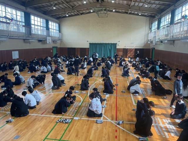2年生が体育館で百人一首大会を開催しました。
