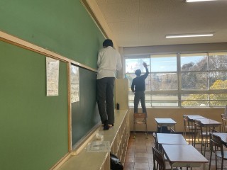 教室の隅々まで、手分けして作業に勤しんでいます。