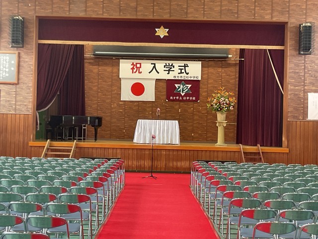 入学式場と、新1年生の教室の準備が整いました。