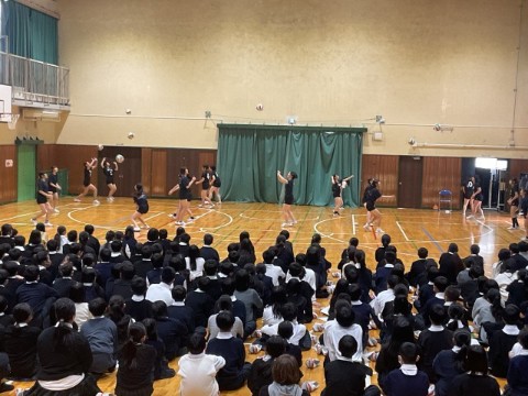 部活動紹介は、部活動ごとに新2・3年生がパフォーマンスをして入部の勧誘をします。趣向を凝らしたパフォーマンスに、新入生は食い入るように見ていました。