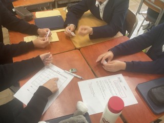 4人グループになっても、同じく隙間なく机をつけて、学び合います。
