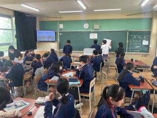 教室内にはこれまでよりもゆとりが生まれ、前の黒板周りや後ろのスペースにも余裕が感じられます。新しい環境の中で、生徒たちは窮屈さを感じることなく、落ち着いた様子で授業に取り組んでいます。発言や発表の場面では、以前よりも一人ひとりの声が教室によく届くようになり、互いの考えに耳を傾ける姿も見られます。