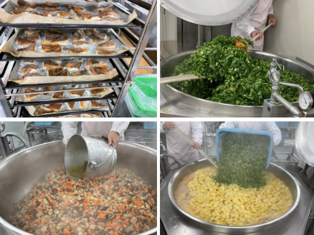焼き魚(鮭)、小松菜のごま和え、筑前煮、月見汁、月見団子