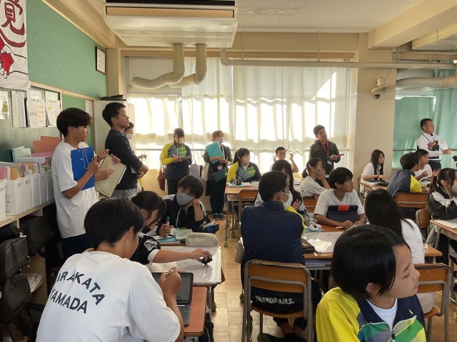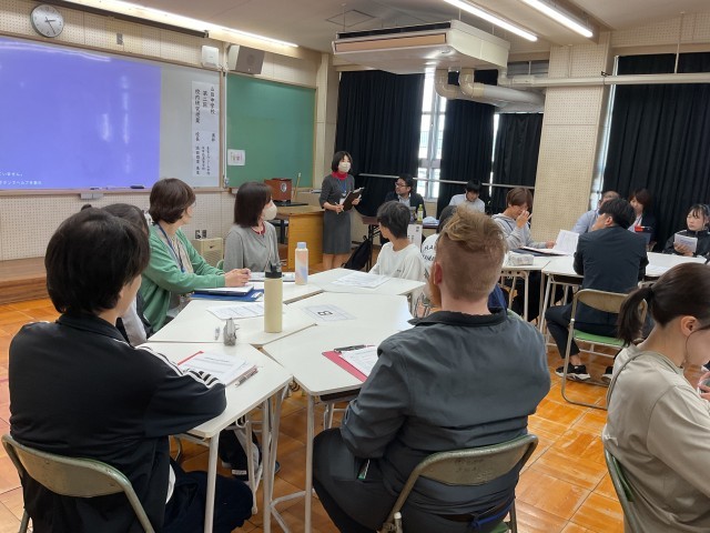 5時間目に2年生3クラスが授業を行い、その後研究討議を行いました。