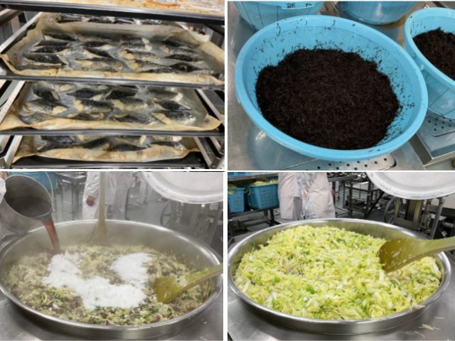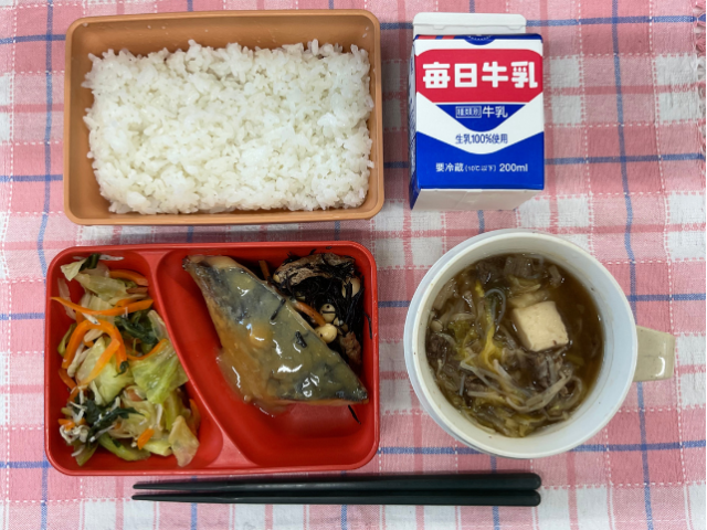 鰆の柚子味噌かけ、ひじき豆、チンゲンサイ菜とじゃこの炒め物、すき焼き