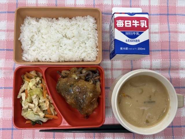 揚げ鯖のみぞれ和え、こんにゃくの甘辛煮、煮びたし、粕汁