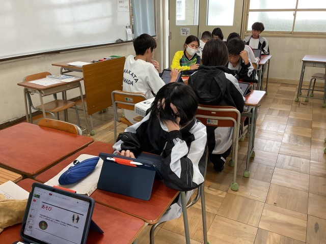 今日は、来週門真なみはや高等学校から来ていただく高校生の出身地(中国、ネパール、インドネシア、ベトナム)について調べたり、質問を考えたりしていました。