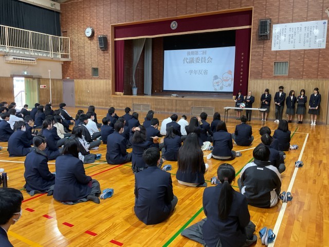 終業式前に、2学期最後の生徒朝礼と伝達表彰も行いました。