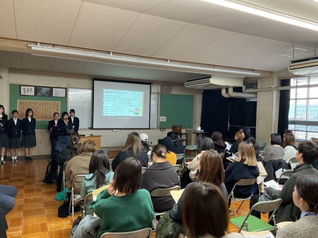 校長や教職員からの説明のほかに、生徒会の本部役員も学校の様子をお話ししました。