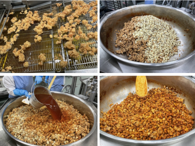 「ヤンニョム」とは、コチュジャン、にんにく、砂糖などの調味料で作る甘辛いソースのことで、そのソースをからめたフライドチキンを「ヤンニョムチキン」といいます。今日は、ボリュームアップのために、揚げたポテトも入れています。ご飯にもよく合う味ですよ。