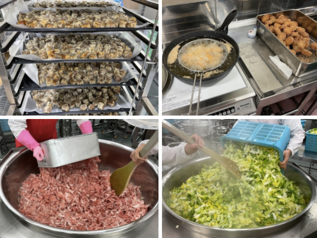 「八宝菜」の名前の「八」は「八種類」という意味ではなく、「たくさんの」という意味があり、「宝」は「貴重な」、「菜」は「料理」という意味のようです。もともと、料理人が残り物で炒め料理を作って食べていたものが元なので、使われる食材に特に決まりはないといわれています。今日の給食にはどんな食材が入っているか探してみてください。
