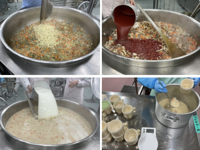 豚肉のケチャップ炒め、ジャーマンポテト、いんげん豆のクリームスープ、ご飯、牛乳