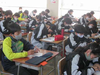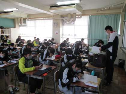 3月15日(月)、3年生が12日(金)に卒業し、本日は1・2年生のみの学校です。毎年3年生が卒業し2つの学年だけになると、急に学校内が静かに寂しくなったように感じられます。授業を観察に行っても、他学年や他クラスは関係ないはずなのに、1年生も2年生も特に教室棟の授業はどのクラスのやたら静かに授業をしていて、違和感すら感じました。後半、美術や体育の授業をまわると流石にその感じはなくなり、活発に活動していました。
