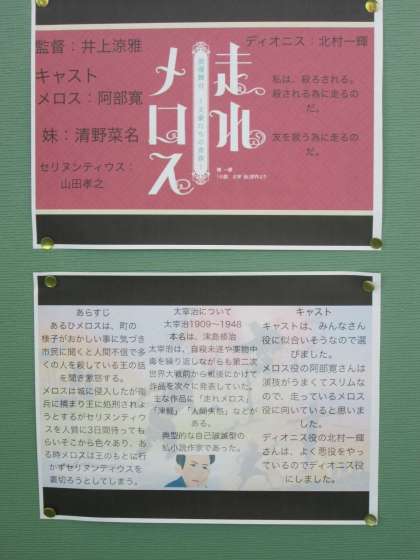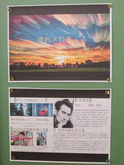 2年生の国語の授業で作成した「走れメロス」の作品紹介ポスターです。宣伝のページと作品紹介のページの2ページを一人で作成しています。