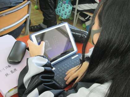 昨日の1時間目は2年生が全クラスともタブレットを使った授業を行っていましたが、今日の1時間目は1年生が全クラスともタブレットを用いた授業をしていました。