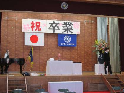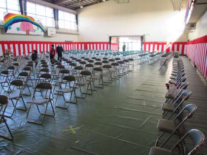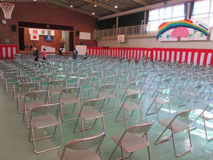 卒業式準備の写真その4です。体育館の中は、最終的にこのようにきれいに完成しました。