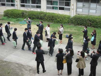 3年1組の靴箱から校門までの退場の様子その2です。