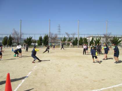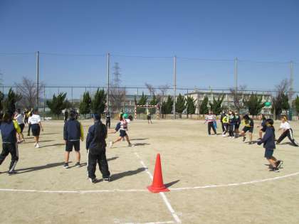 三色ドッジボールの続きです。写真には2枚を除き、一昨日の1年生のドッジボールの写真と同様に、写真の中にボールが映り込んでいます。探してみてください。