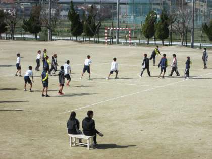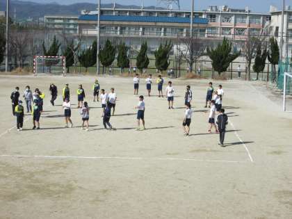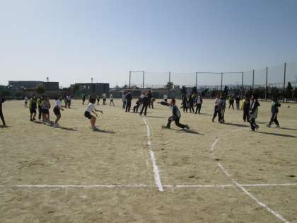 ここからは、通常のドッジボールです。男女混合チームで、クラスを半分に分けてそれぞれクラス対抗で戦っています。こちらの写真(最初の2枚は校舎から映しているので、対象外)にもボールが映り込んでいますので、探してみてください。また途中の1枚だけは、ボールそのものではなく、ボールの崖が写っている難題もあります。