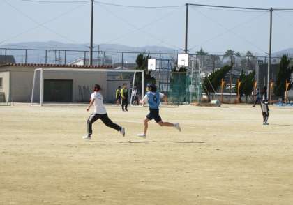取り組んだゲームは、鬼ごっこ、三色ドッジボール(男女別クラス対抗)、ドッジボール(男女混合クラス半分ずつの対応)の3つの種目でした。三色ドッジボールは、撮影が難しく、あまり迫力のあるものが撮れませんでした。鬼ごっこはもっと撮影が難しく、写真を見ても何をしているのかわからないかもしれません…。